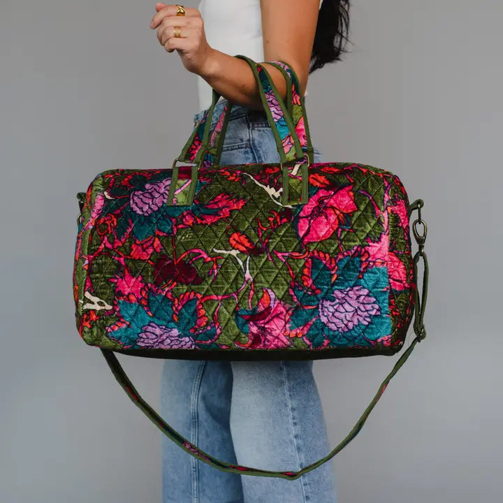 Olive & Multicolored Floral Duffel