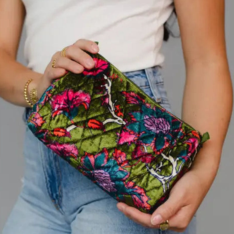 Olive & Multicolored Floral Travel Pouch